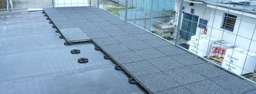 - dodávka podkládok – terčov pod dlažbu alebo rošt, montáž ucelenej časti vrátane hydroizolácie